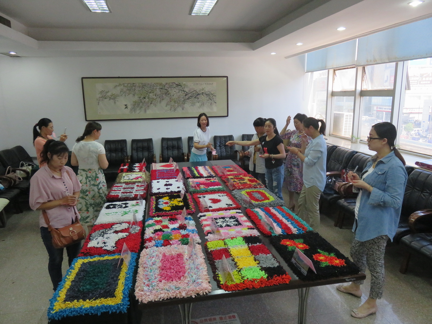 近日,臺北女職工創新編織作品在墟溝金臺大酒店四樓會議室進行展評。來自12個女工委選送的23幅參評作品色彩繽紛,各具特色。創新編織作品是女職工們利用舊衣服通過裁剪編織成多功能墊子。這一活動,不僅低碳環保而且富有創造精神。自開展以來,公司女職工涌躍參加,充分發揮想象力,設計出各有特色的圖案,并精心制作而成。舊衣舊布,在她們的巧手下,轉化為一件件精美作品。經推薦參賽的作品,通過各分會女工主任的認真評選,張來萍等5位女職工獲“創新編織能手”獎。