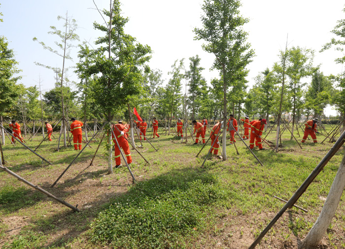 ????? 活動分為四組進行,四組黨員突擊隊跟隨引導(dǎo)員的腳步到達(dá)各自片區(qū),進行綠化帶雜草清除作業(yè)。在各組支部書記的帶領(lǐng)下,勞動中人人做表率,個個干勁足,有條不紊互相配合,一抹抹橘色在清新草色的襯托下格外美麗。